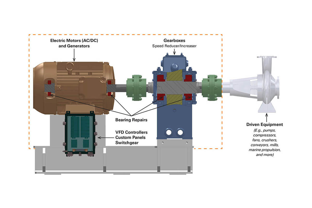 - Preventative maintenance and diagnostic services for gearboxes, electric motors, generators, and bearings